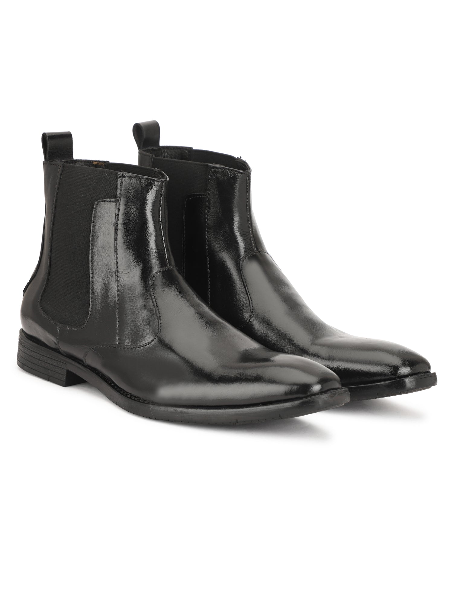 Genuine Leather Snake Print Chelsea Boots With Chain Buckle Black